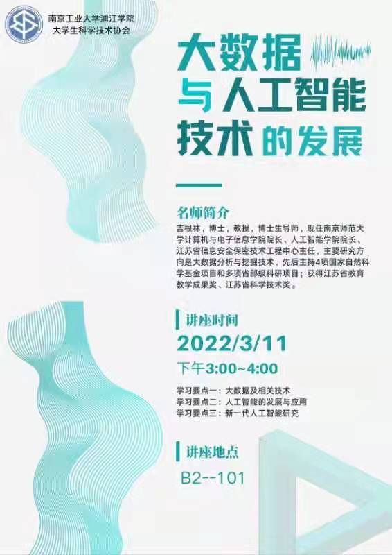 3月11日下午,由我校工創(chuàng)中心主辦,校大學(xué)生科協(xié)承辦,主題為 “大數(shù)據(jù)與人工智能技術(shù)的發(fā)展”講座通過網(wǎng)絡(luò)直播的形式順利舉辦。本次講座分為兩部分,第一部分由南京師范大學(xué)計(jì)算機(jī)與電子信息學(xué)院院長吉根林教授主講,第二部分由大汪老師主講。