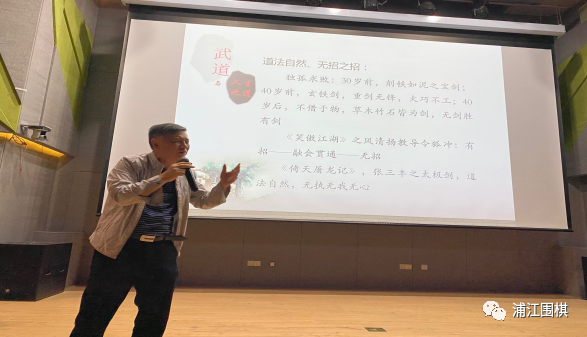 為了落實(shí)浦江學(xué)院人文素養(yǎng)教育計(jì)劃,2022年9月28日晚上六點(diǎn),南京工業(yè)大學(xué)浦江學(xué)院圍棋文化研究院院長何云波教授于L15報(bào)告廳為全校同學(xué)舉辦了“武俠小說與中國文化”講座。何云波教授任湘潭大學(xué)教授、博士生導(dǎo)師,中國首位“圍棋博士”,著名圍棋文化研究專家。主持國家社會科學(xué)基金項(xiàng)目《中國圍棋思想史研究》等4項(xiàng)。