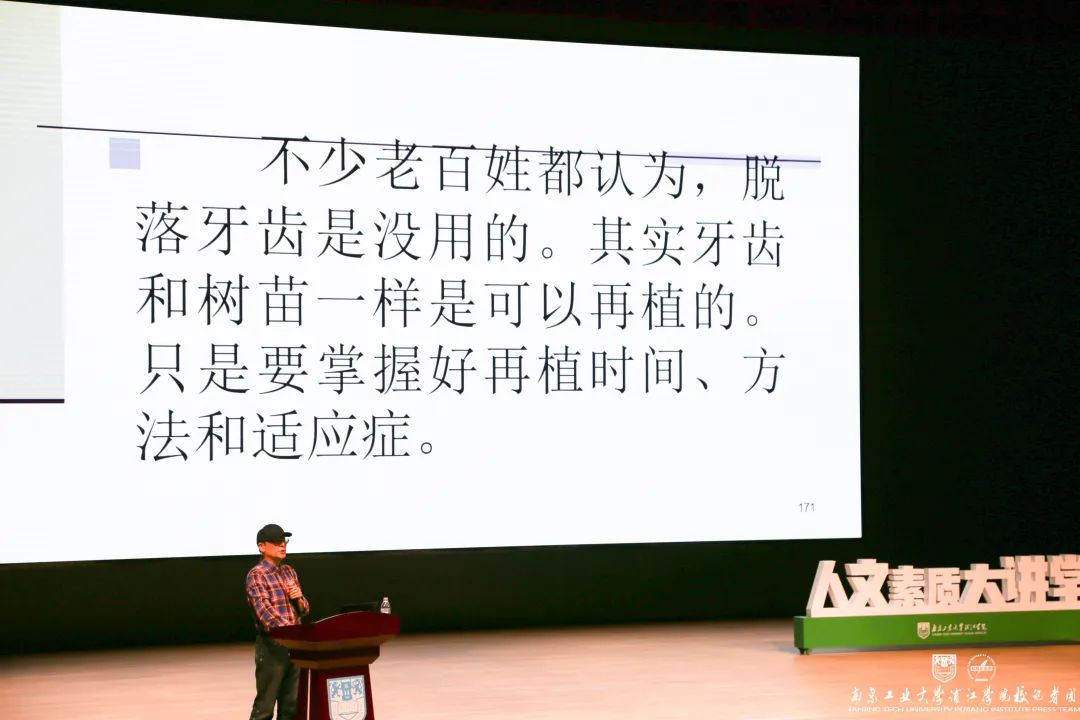 葛教授概括了我國(guó)近幾十年來口腔醫(yī)療的發(fā)展歷程,并指出口腔醫(yī)療的地區(qū)發(fā)展存在不平衡性。葛教授以其工作單位南京市口腔醫(yī)院為例,介紹其艱難向上的發(fā)展史,以小見大,再現(xiàn)了中國(guó)口腔醫(yī)學(xué)不斷發(fā)展壯大的過程。在講堂上,葛教授解釋了他成為口腔醫(yī)師的原因,分享他為許多社會(huì)知名人士治療牙齒的有趣經(jīng)歷。