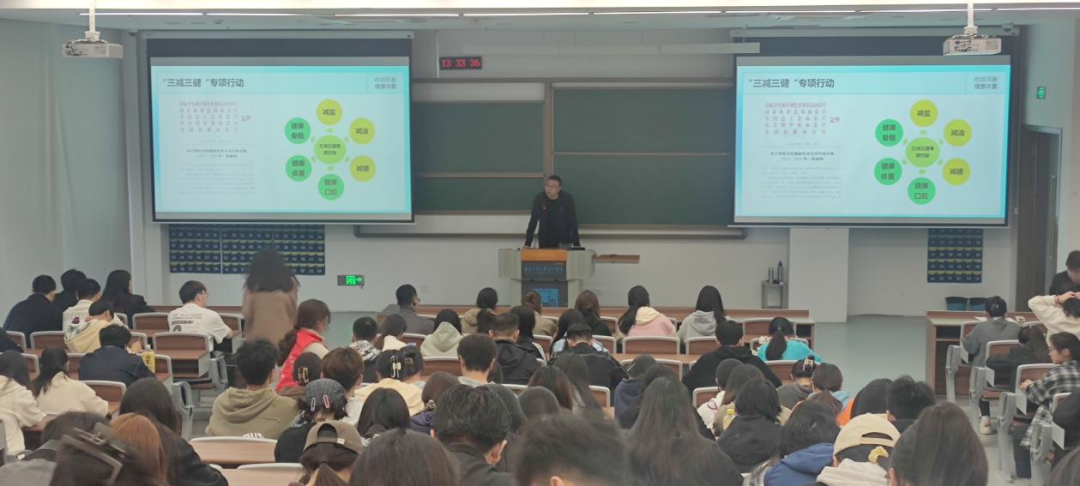 講座中佟老師從食物多樣合理分配、限糖限酒、足量飲水、科學減重等角度對健康飲食進行了詳細講解。講座期間還設置了互動問答環(huán)節(jié),現場氣氛熱烈,更是加深了同學們對健康體重的認識和了解。
