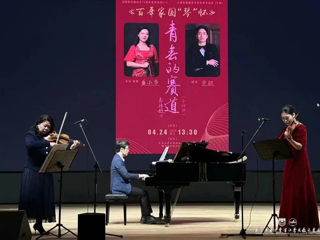 概要:為了迎接新中國成立75周年及落實教育部關(guān)于全面實施美育浸潤行動的通知,4月24日下午,盛氏小提琴世家第三代領(lǐng)軍傳人盛小華教授應(yīng)邀與我校藝術(shù)教育中心副主任黃勰老師在南京工業(yè)大學(xué)浦江學(xué)院圖書館大禮堂上演了以《青春的賽道——百年家國“琴”懷》為題的講演音樂會。校長林萍華、校長助理朱新娣、校長助理曹敏等領(lǐng)導(dǎo)老師出席了本次活動。