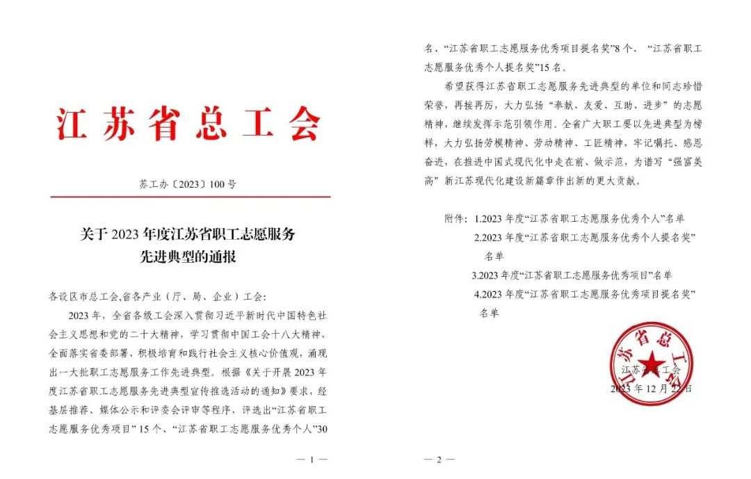 頂 薦 熱 點(diǎn)贊!CUAD職工榮獲2023年度江蘇省職工志愿服務(wù)優(yōu)秀個人