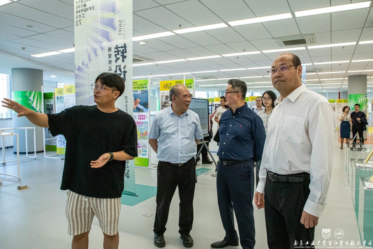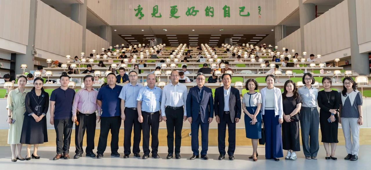 領(lǐng)導(dǎo)嘉賓一行乘觀光車游覽校園,參觀了學(xué)校圖書館、藝術(shù)學(xué)院畢業(yè)展、“浦江紅”潮商林等。