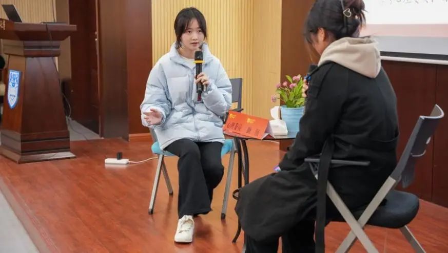 (商學院23級財務管理02班班心委孫雨潔在談心談話比賽現(xiàn)場)