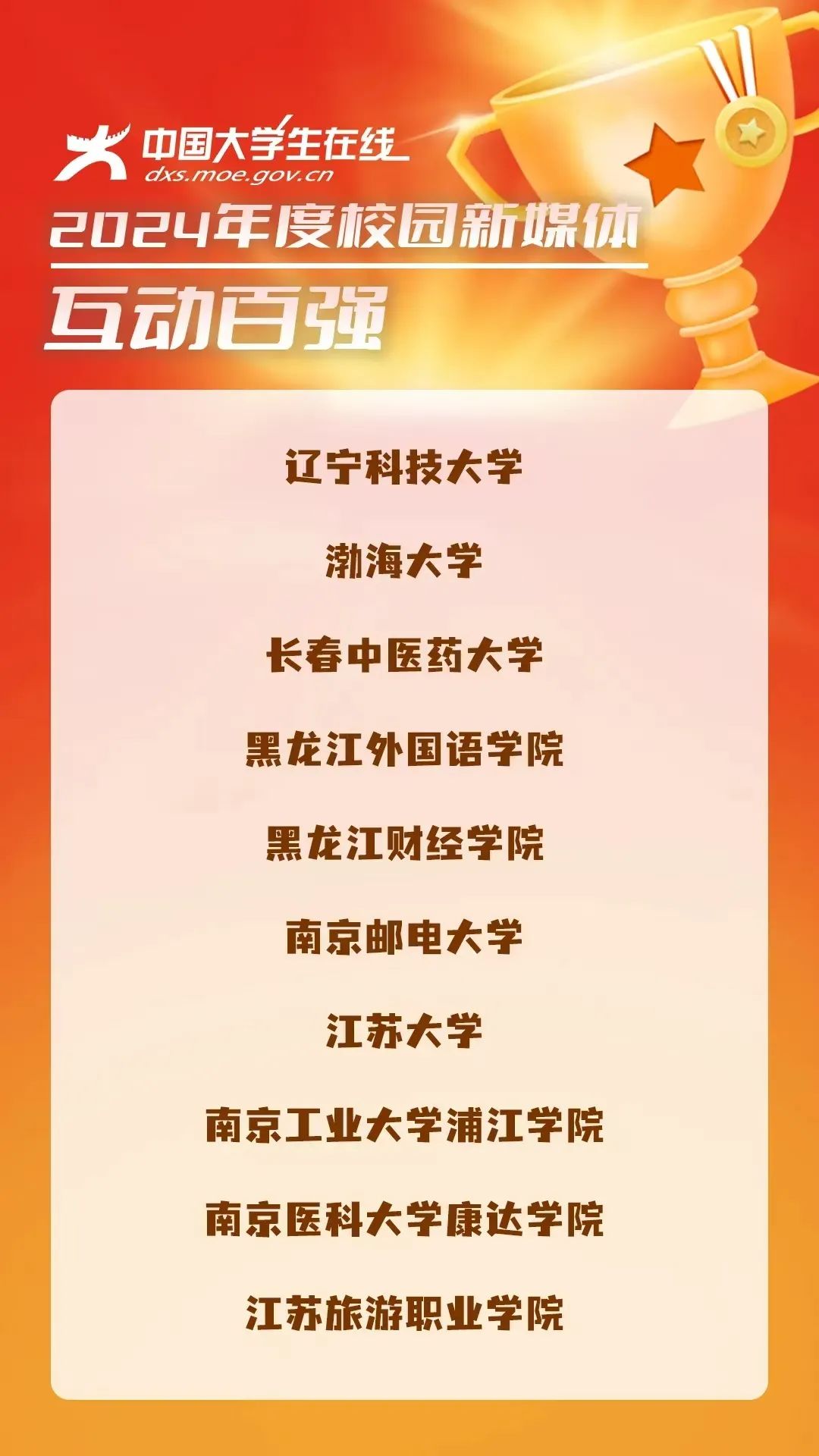 頂 薦 熱 喜報(bào) | 我校榮獲2024年度校園新媒體互動(dòng)百?gòu)?qiáng)