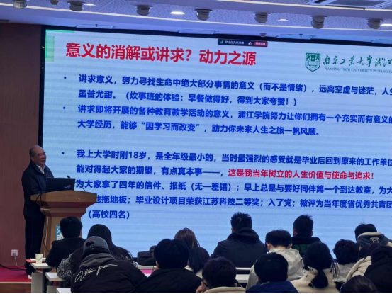 活動伊始,學校黨委書記、校長林萍華與同學們親切交流,分享了自己70余年來的豐富人生經(jīng)歷和深刻感悟,鼓勵大家秉持積極、盡心、快樂的人生態(tài)度,勇往直前。隨后,林校長引導同學們深入思考人生價值與使命,以及大學生活的意義和動力所在。他提出,同學們應在浦江學院這片沃土上,從六個維度探尋人生的意義和價值:知識的拓展與深化,實現(xiàn)學思結合;能力的培養(yǎng)與外顯,勇于敏于創(chuàng)新;朋輩的砥礪與關懷,拓寬人脈網(wǎng)絡;三觀的塑造與路徑,勇于使命擔當;認知的差別與成長,踐行約恕儉敬;知識的實踐與應用,力求知行合一。