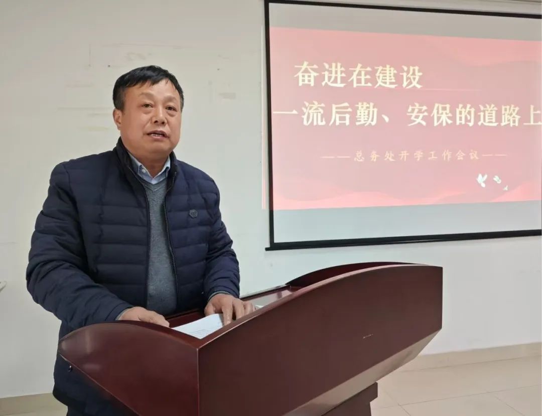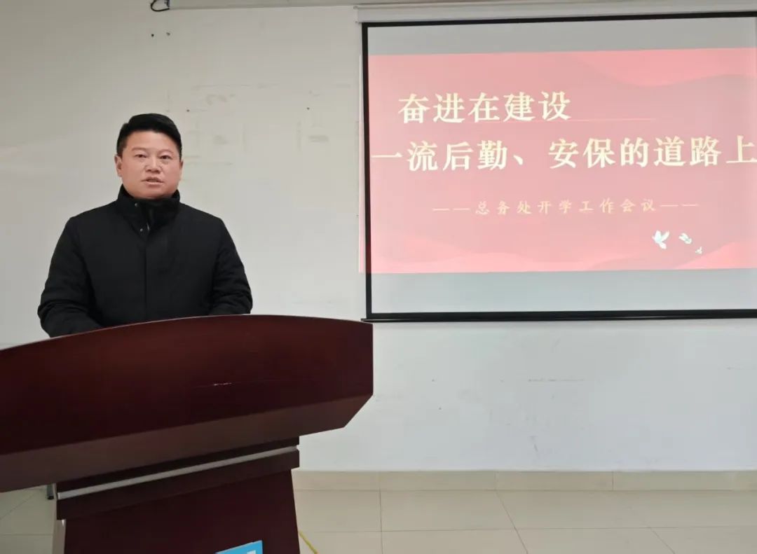 兵馬未動,糧草先行。為進(jìn)一步明確目標(biāo)、理清思路、統(tǒng)一思想、鼓足干勁,確保新學(xué)期后勤保障和安全保衛(wèi)工作扎實(shí)有效開展,2月13日下午,學(xué)校在綜合樓206會議室召開新學(xué)期總務(wù)工作會議,總務(wù)處科以上干部參加會議。會議由鐘蘭祥副校長主持。