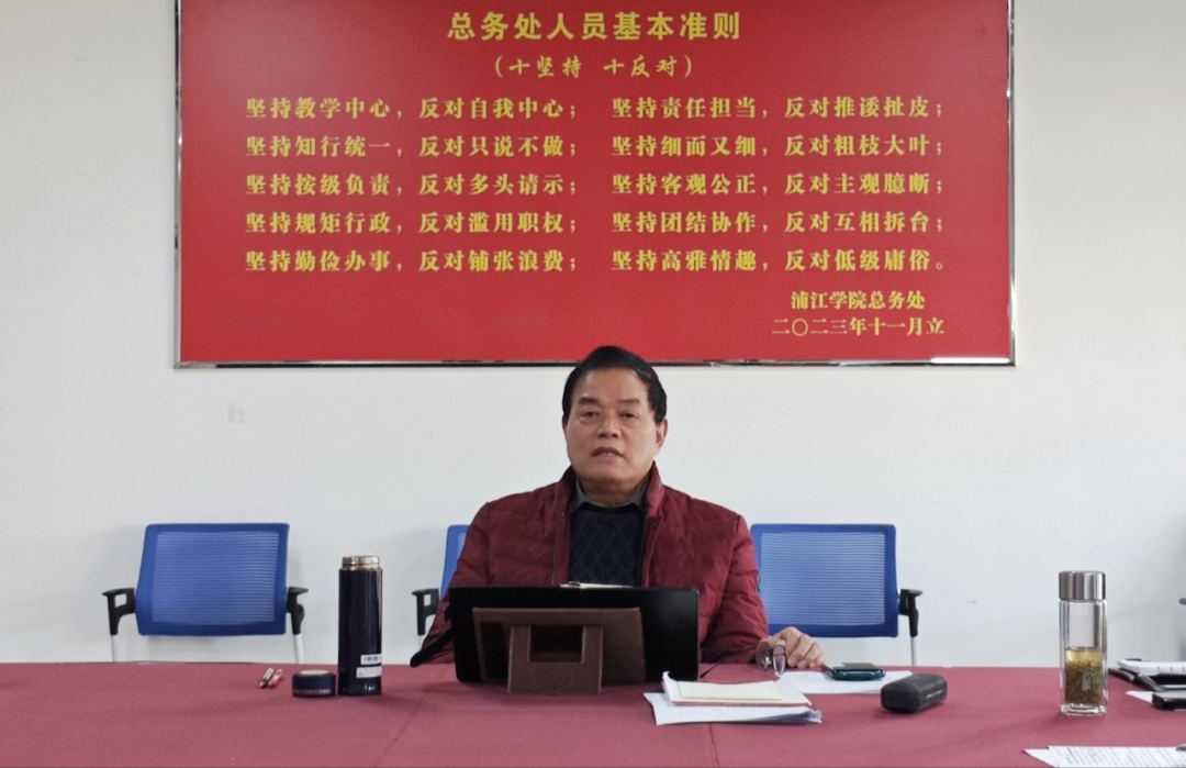 鐘蘭祥副校長講話。他指出,總務(wù)部門全體同志新學(xué)期要不斷強(qiáng)化中心意識、責(zé)任意識、精品意識、安全意識和學(xué)習(xí)意識,把準(zhǔn)工作方向和目標(biāo),為學(xué)校以人才培養(yǎng)為中心的各項(xiàng)工作貢獻(xiàn)總務(wù)力量。結(jié)合學(xué)校面臨的形勢和任務(wù),鐘蘭祥強(qiáng)調(diào):一要看到變化,積極應(yīng)對變化。面對人工智能、教育改革和文化事業(yè)的突飛猛進(jìn),總務(wù)同志要科學(xué)應(yīng)變、主動求變,特別要將AI賦能于服務(wù)育人、環(huán)境育人、管理育人工作中去;二要看到不足,積極彌補(bǔ)不足。在嚴(yán)峻的形勢面前,要看到總務(wù)隊(duì)伍自身的短板弱項(xiàng),保持緊迫感和危機(jī)感,努力提高科學(xué)思維、信息化素養(yǎng)和精細(xì)化保障水平;三要加強(qiáng)學(xué)習(xí),努力提高工作能力。要理論聯(lián)系實(shí)際,正確分析和解決問題,做到接受工作問標(biāo)準(zhǔn)、請示工作帶方案、匯報(bào)工作講結(jié)果、分享工作說流程、復(fù)盤工作談感受;四要振奮精神,保持奮斗者姿態(tài)。不要在該吃苦的年紀(jì)選擇安逸,要將本部門的工作當(dāng)成一個崇高的事業(yè),干出特色、干出成績。