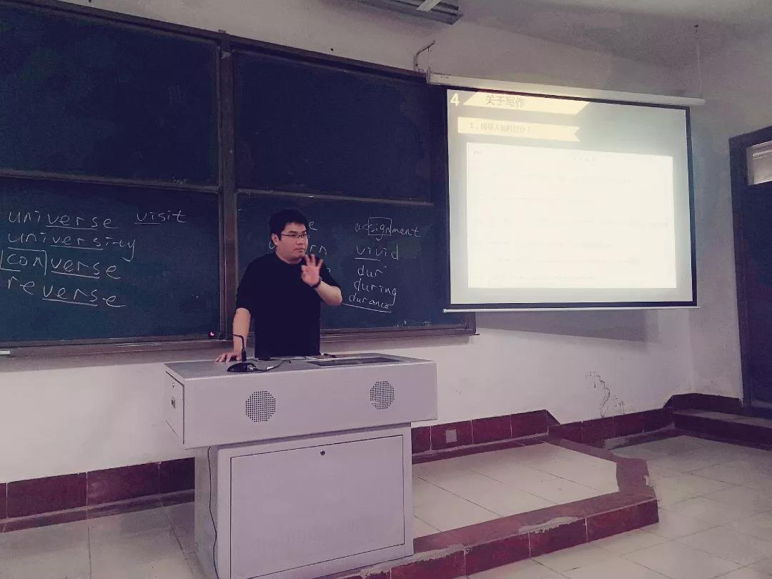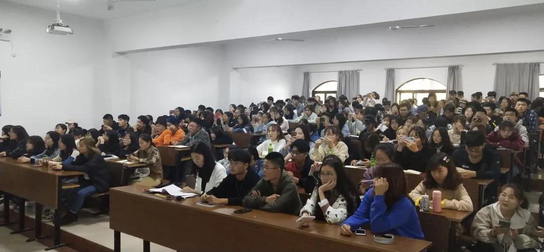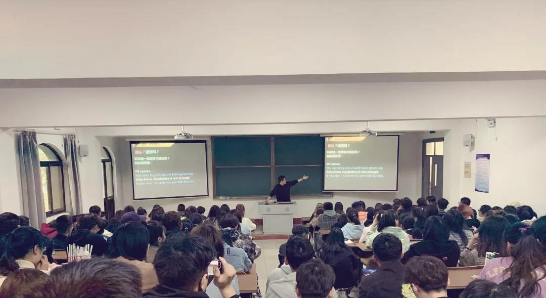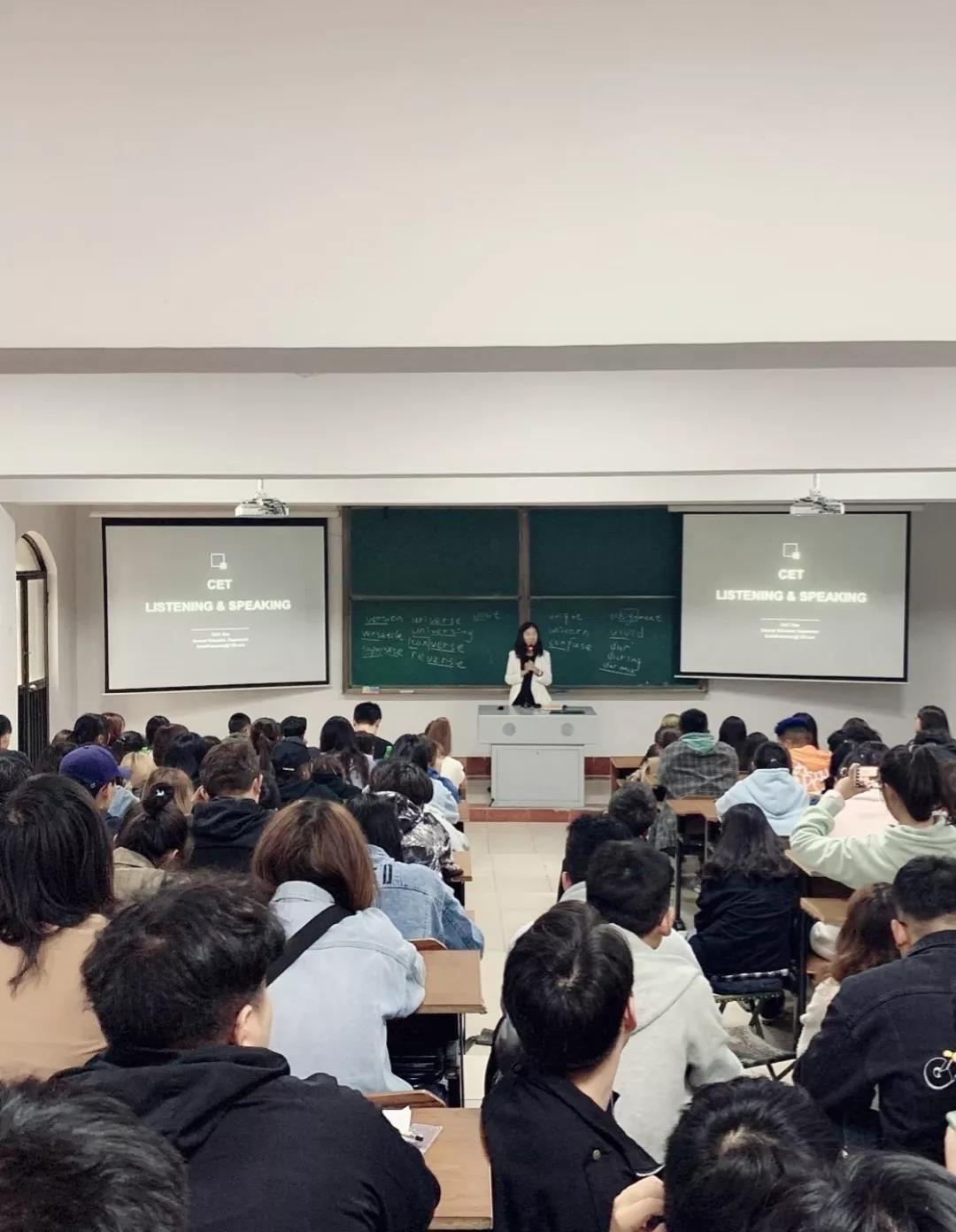 原本150人的教室,來了240名同學(xué),座位不夠同學(xué)們領(lǐng)取小馬扎坐在走道里。講座正式開始前,全場師生用熱烈的掌聲歡迎基礎(chǔ)部張洪瑞、郭瀟兩位老師的到來,感謝他們在百忙中抽出時間為學(xué)生們指導(dǎo)四六級??粗鴿鷿惶玫那笾獙W(xué)子,程老師感嘆到自己求學(xué)期間也曾因講座人爆滿而在主講臺上席地而坐聽取報告,這才是大學(xué)應(yīng)該有的學(xué)習(xí)氛圍,英語四六級不僅僅關(guān)乎同學(xué)們的畢業(yè),關(guān)乎同學(xué)們的就業(yè),更關(guān)乎同學(xué)們的未來發(fā)展,由衷的希望各位學(xué)生都能夠順利通過四六級考級。